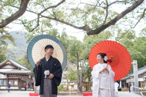 由緒ある神社で、和の挙式も叶います。「ちゃんと“結婚したんだ”と実感できる時間でした。」