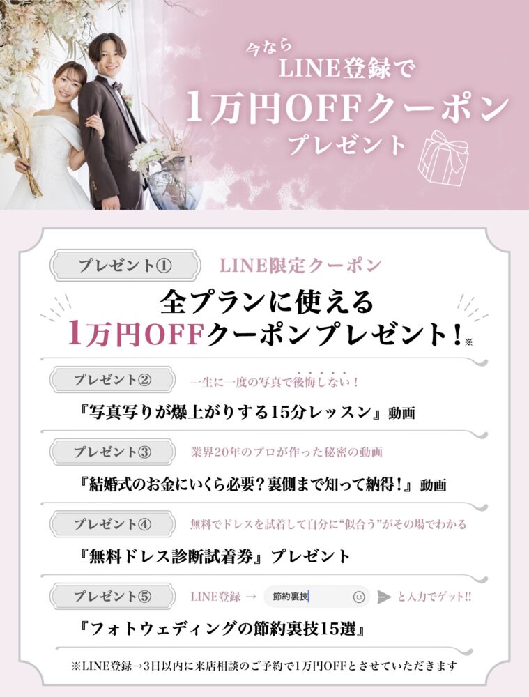 撮影する前撮りやフォトウエディングとは違い、