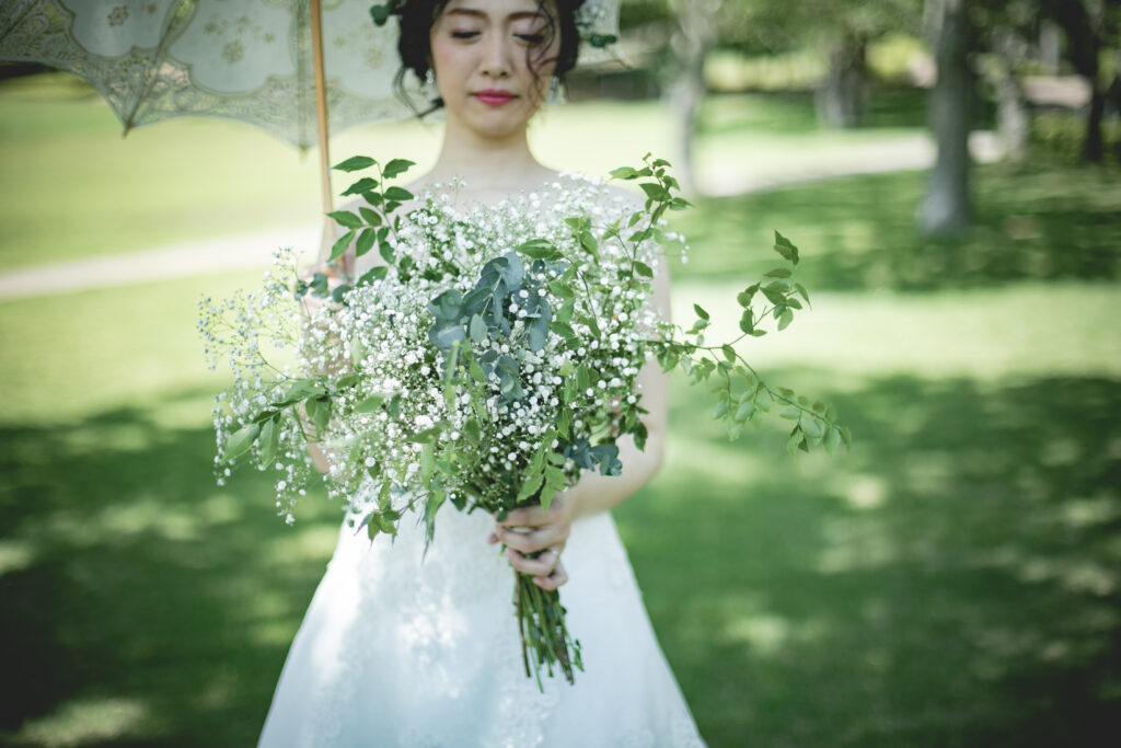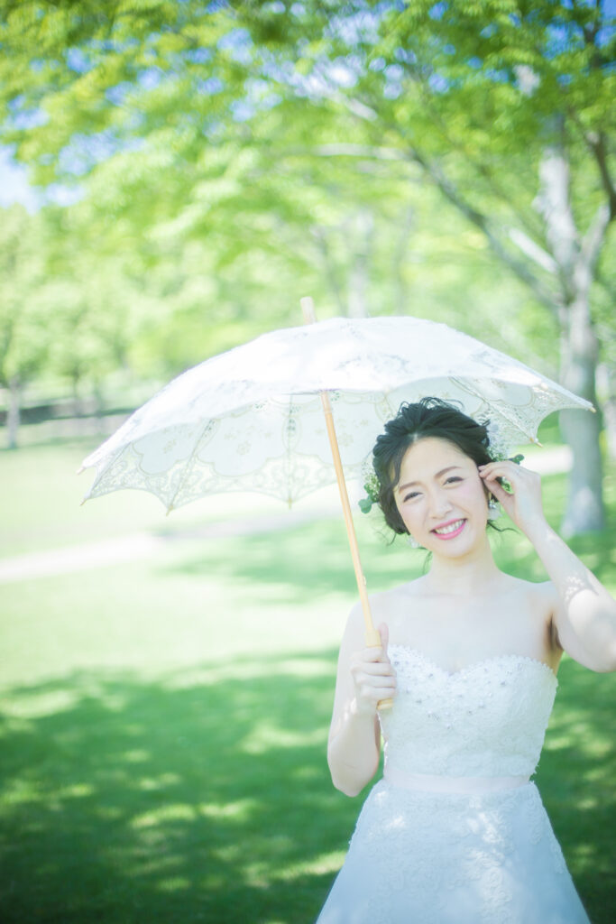 緑に囲まれた空間だからこそ、白いドレスの美しさが引き立ちます。