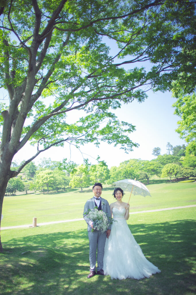 森林に囲まれた広い園内には芝生広場などもあり、自然の中で開放感のあるフォトウェディングを楽しめます。